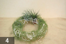 リングの上からスパニッシュモスを薄く掛けデザイナーワイヤーで留める。