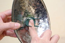 小皿にピンをしっかりと固定します(以後汚れて食器用お皿としては使えなくなるので、お花用として使ってください)。
